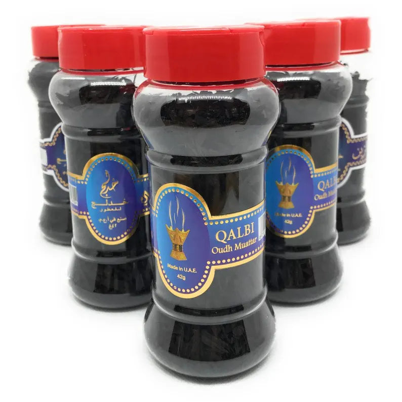 Elevate your space with the exquisite scent of Bakhoor/Incense Oudh Muattar 42gms By Khadlaj, brought to you by Best Indy Fashion Store. This luxurious incense features a harmonious blend of Oudh Turabi, Oudh Malaki, Oudh Combodi, Oudh Al Hind, Oudh Mabrook, Oudh Zain, Oudh Alf Mabrook, Oudh Qalbi, Oudh Dar Al Zain, and Oudh Maknoon, offering a truly unique olfactory experience that will captivate your senses and leave a lasting impression on anyone who enters your home.