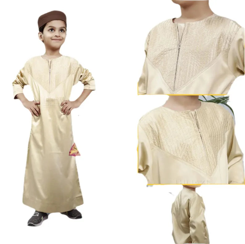 Dress your little boy in style with this Boy's Omani Emirati Style Thobe by Best Fashion. Made with high-quality polyester material, this dress is comfortable and perfect for any occasion. The dress features a Djellaba and Robe style, which is perfect for boys who want to look traditional and stylish. This dress is designed by Hijaji and is perfect for boys who want to show off their unique style. It is made in India and is available in different sizes to fit your growing boy. Get your hands on this amazing dress and make your boy stand out in any crowd.