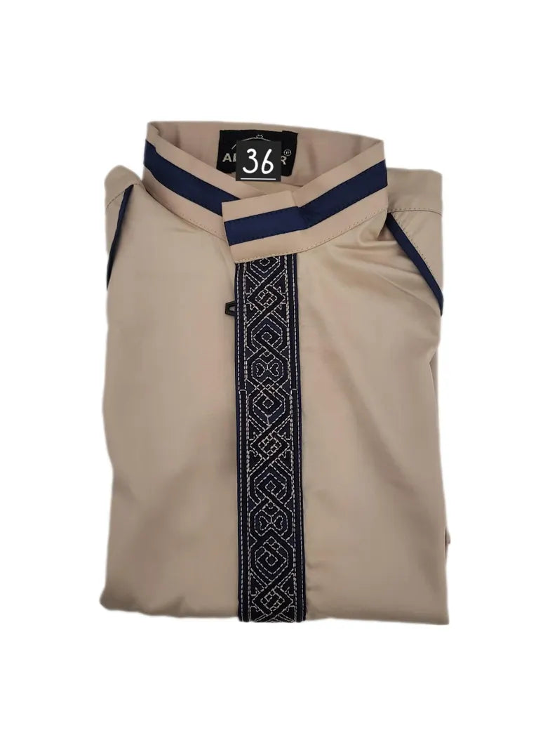 Dress your young one in style and tradition with this beautifully tailored Designer Thobe for Boys. Featuring a classic collared neckline, buttoned front, and elegant stitching, this jubbah robe blends modesty with modern design. Perfect for Eid, Jumma prayers, family gatherings, or everyday wear.